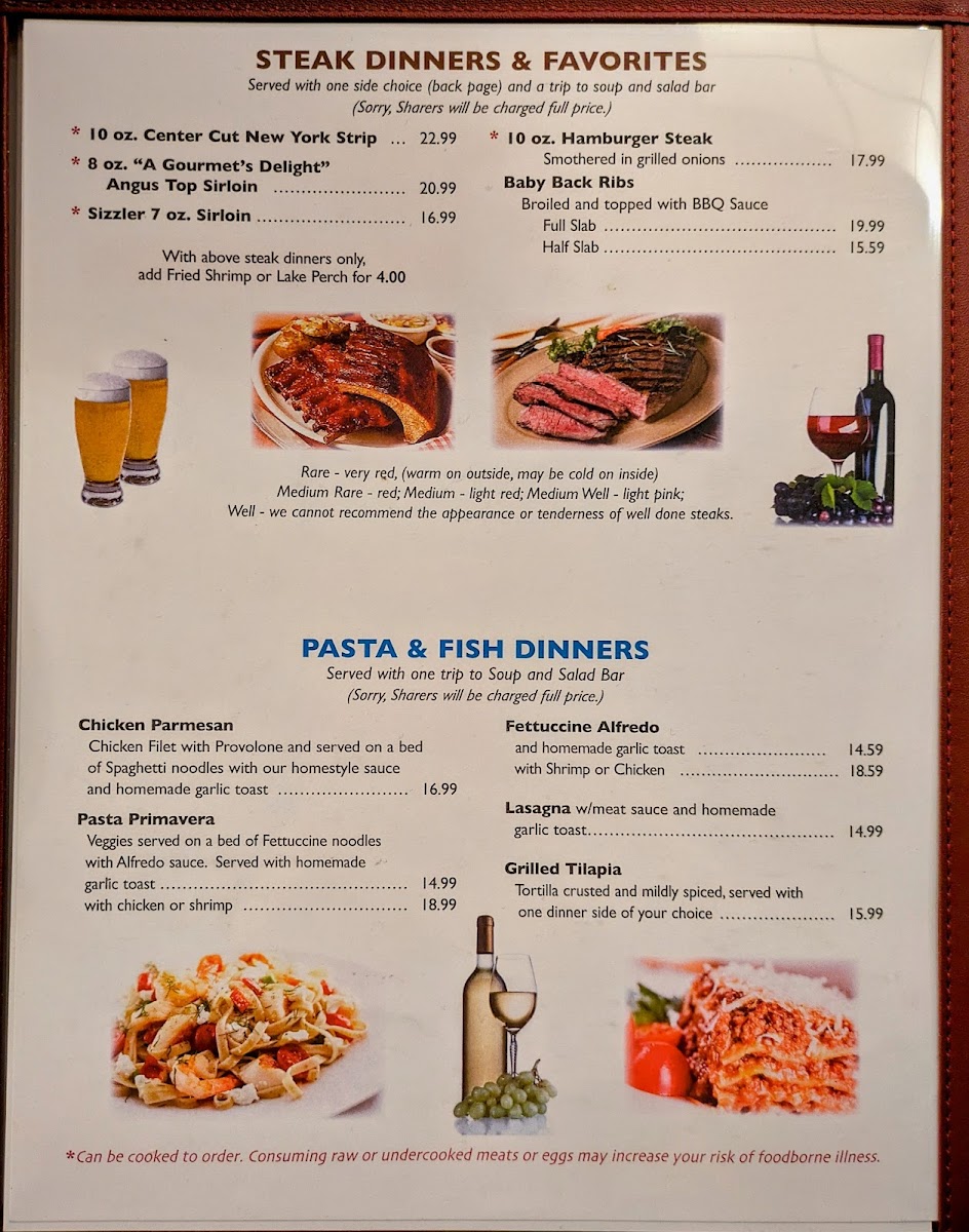 Step into a world of culinary delights where the menu shines with a variety of offerings. With options like the 10 oz. Center Cut New York Strip and Sizzler 7 oz. Sirloin, meat lovers will indulge in expertly grilled steak dishes. For lighter fare, the All-You-Can-Eat Soup and Salad Bar is a must-try, featuring homemade bread that guests rave about.